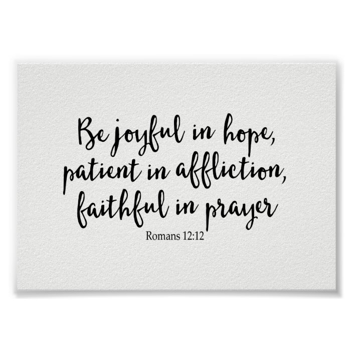 Romans 12:9-12 “Let love be genuine. Abhor what is evil; hold fast to what is good. Love one another with brotherly affection. Outdo one another in showing honor. Do not be slothful in zeal, be fervent in spirit,serve the Lord. Be joyful in hope, patient in affliction, and faithful in prayer.”