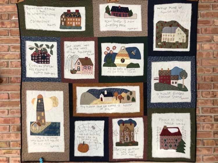 One of the sweetest gifts that I ever received was given to me by my Aunt Sue. She is the one who gave me the inspiration for this blog. She gave this quilt to Paul and me on our 10th wedding anniversary and it hangs, to this day, in our living room. What I love about it is that it is filled with scripture; one verse per month. Since I seasonally decorate, it brings beauty to our home in every season. What I remember most about this precious gift is the joy it gave my Aunt Sue’s when she gave it to us. She was a cheerful giver!