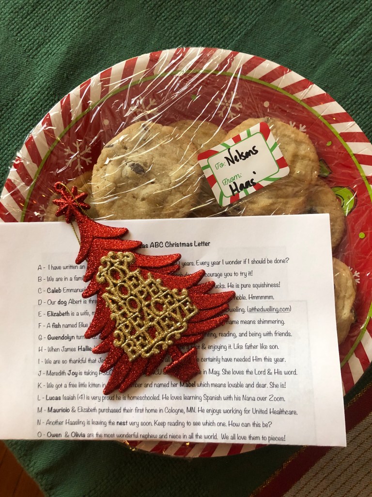 A new tradition that we started today (I guess it may not be a tradition yet.) is what I am going to call Cookie Baking with Purpose in an effort to share the good news with our neighbors and to let the people know. We have decided to bake cookies for every neighbor around our block and deliver them with a little ornament and note throughout the month of December. Today Gwendolyn and I baked chocolate chip cookies, wrapped them up, put a little ornament on top, and gave a copy of our Christmas letter to five neighbors. I am not sure who it brought more joy to…Gwendolyn & me or the recipients. Tomorrow we will deliver to five more families and so on until the whole block is covered by Christmas.