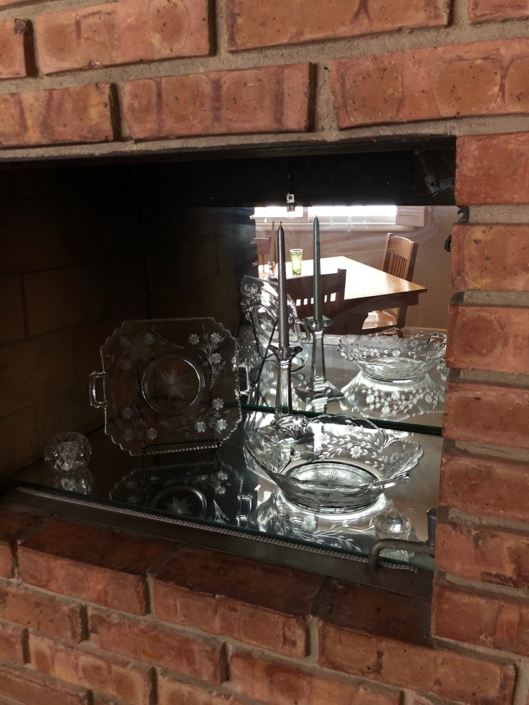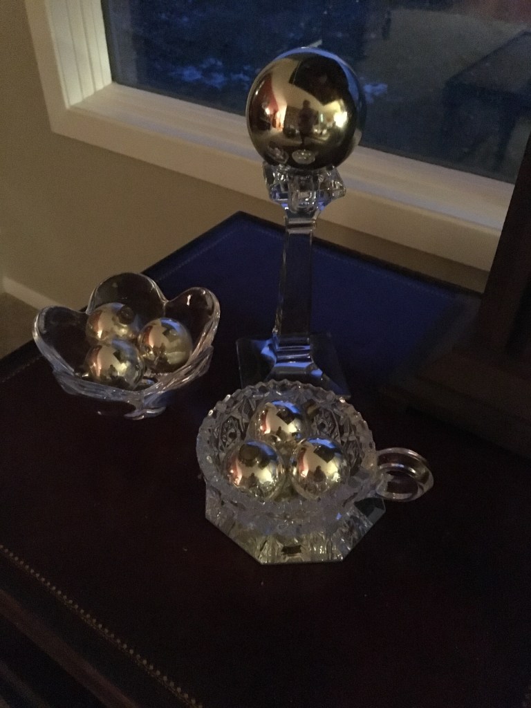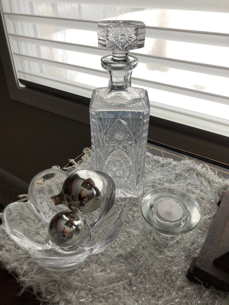 Last week I took down Christmas and put up winter which includes all things sparkly…crystal, silver, and twinkly white lights. It looks so beautiful and I call it Winter Sparkle.